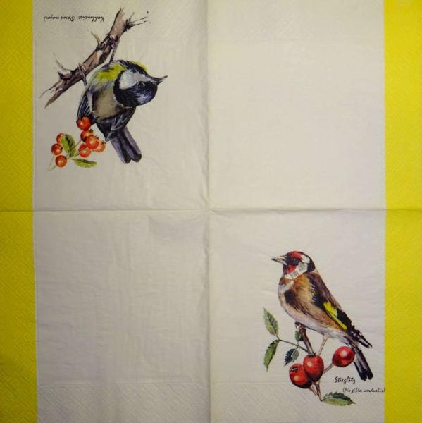 VÖG-666 Vögel - 3-lagig (gelb) (breiter Rand) - Home Fashion