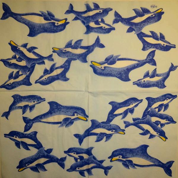 027 Dolphin / Whale / Shark - 3-ply - (blue) - Ambiente
