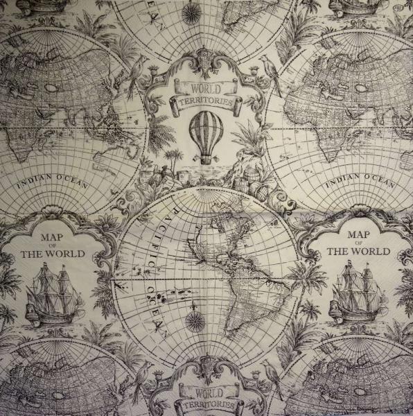 MARI-074 Maritime - 3-ply (black/white) - Ihr - Map of the World