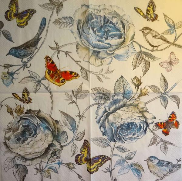 ROS-2123 Roses - 3-ply (white/blue)